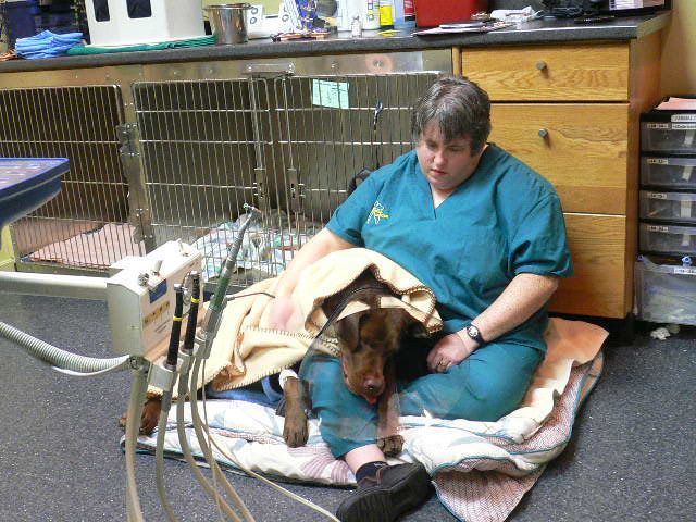 麻酔覚醒直後に寄り添うスタッフが印象てきでした。この後、この大きな犬が暴れたのですが、この彼女により瞬時に抑え込まれ身動き一つできなくました。彼女には3年前に会っていますが、一段とパワーアップした気がしました!Oh!great.